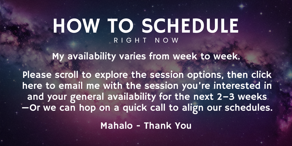 Please Note: Deep counsel or guidance is Not included in this session due to time limitations. If you require more comprehensive support in navigating significant life transitions or challenges, wish to acquire new self-help skills, or are prepared to dig deeper, please explore the UPGRADE option.